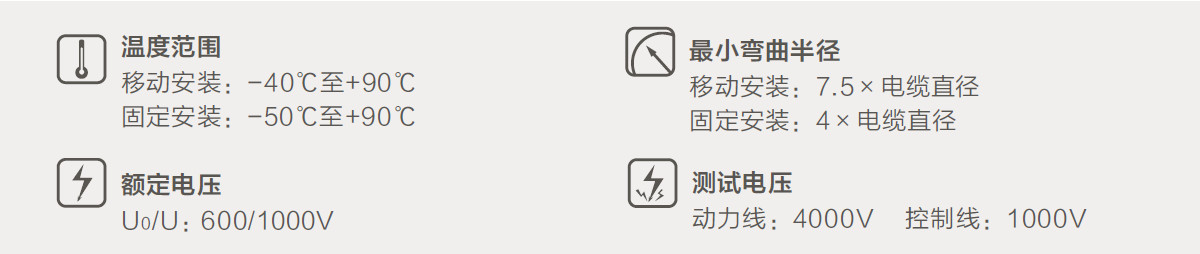 · 1000萬(wàn)次彎曲循環(huán),拖鏈行程100m,加速度50m/s2